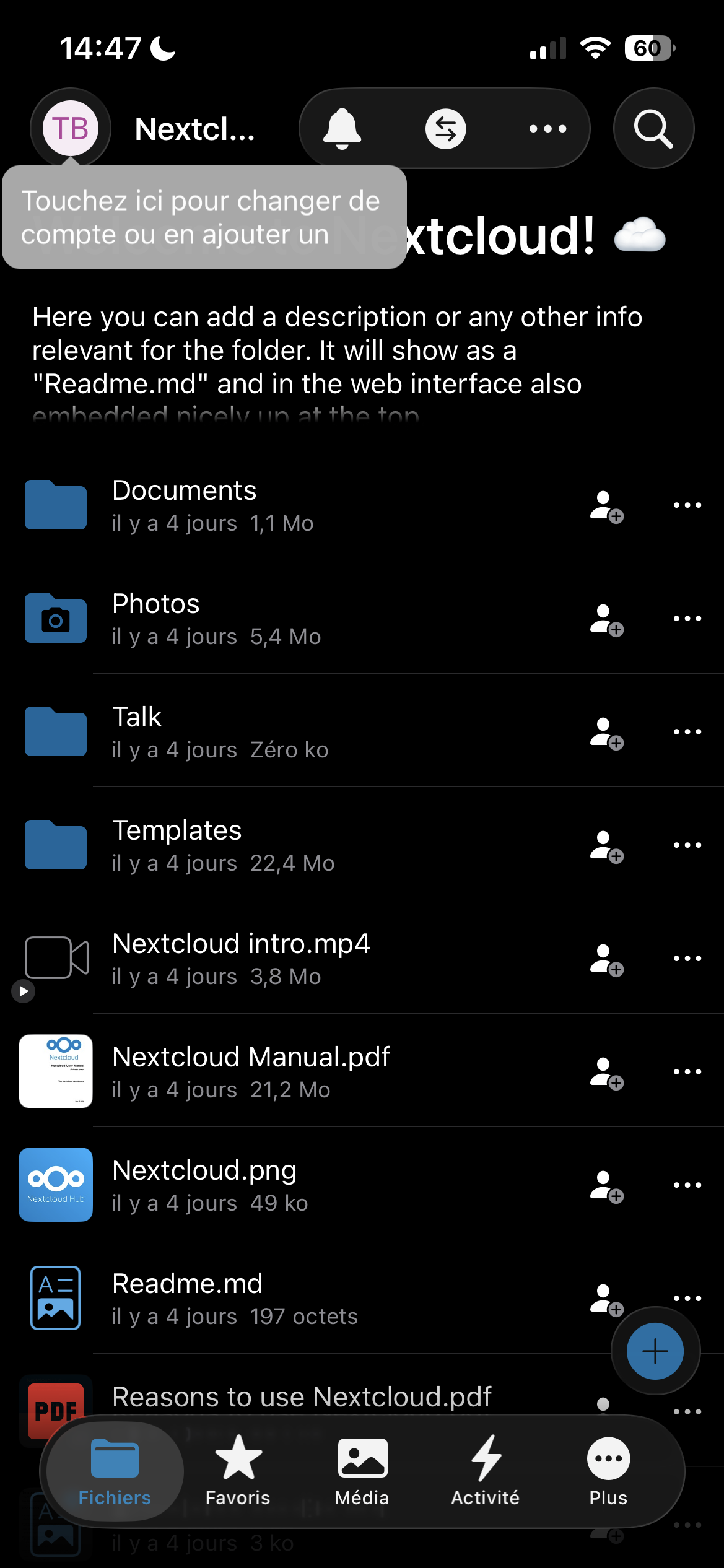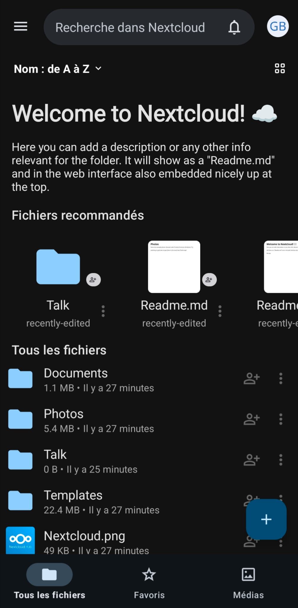 Accès à l’espace Nextcloud depuis nos téléphone :