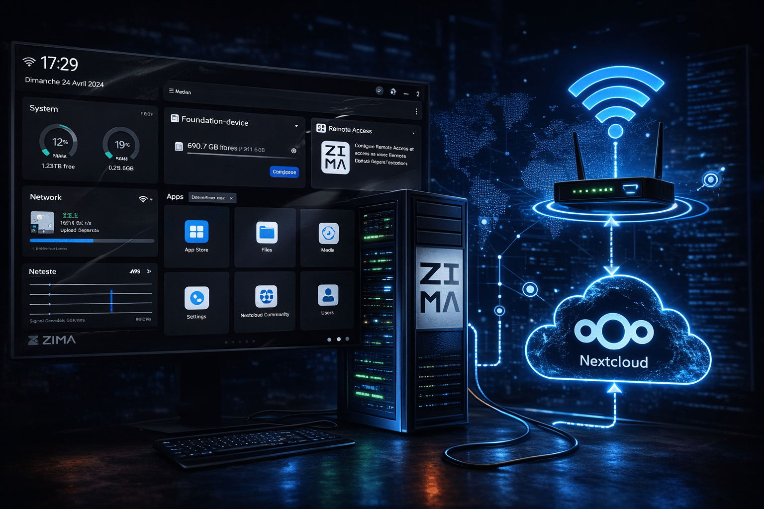 Pour cet AP, j’ai manipulé une solution de serveur NAS qui est ZimaOS ou nous avons installé une solution cloud qui est Nextcloud. Nous avons mis en place le service VPN pour connecter à notre serveur à distance. Mais aussi le paramétrage IP notre serveur NAS. De plus, nous avons intégré à un domaine Active Directory la solution Nextcloud pour que chaque utilisateur puisse se connecter à son espace cloud personnel.