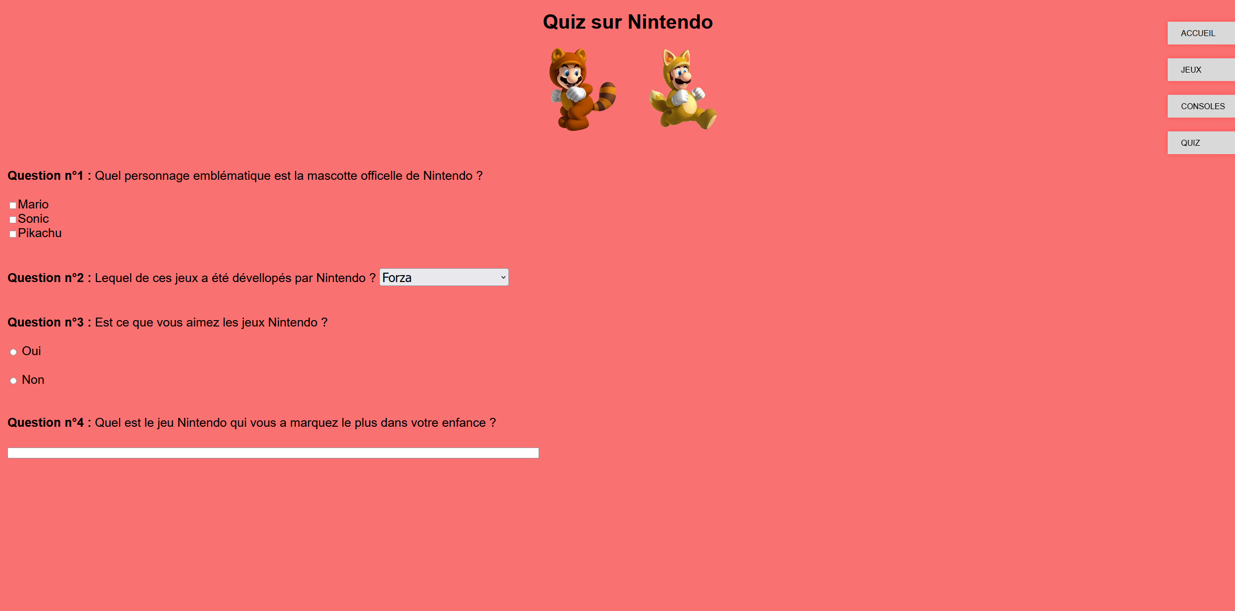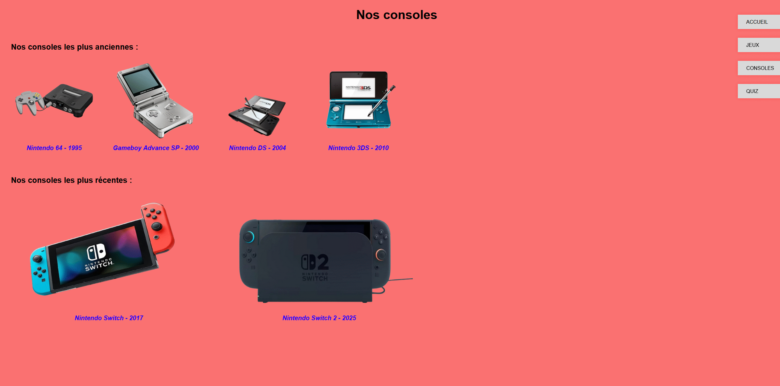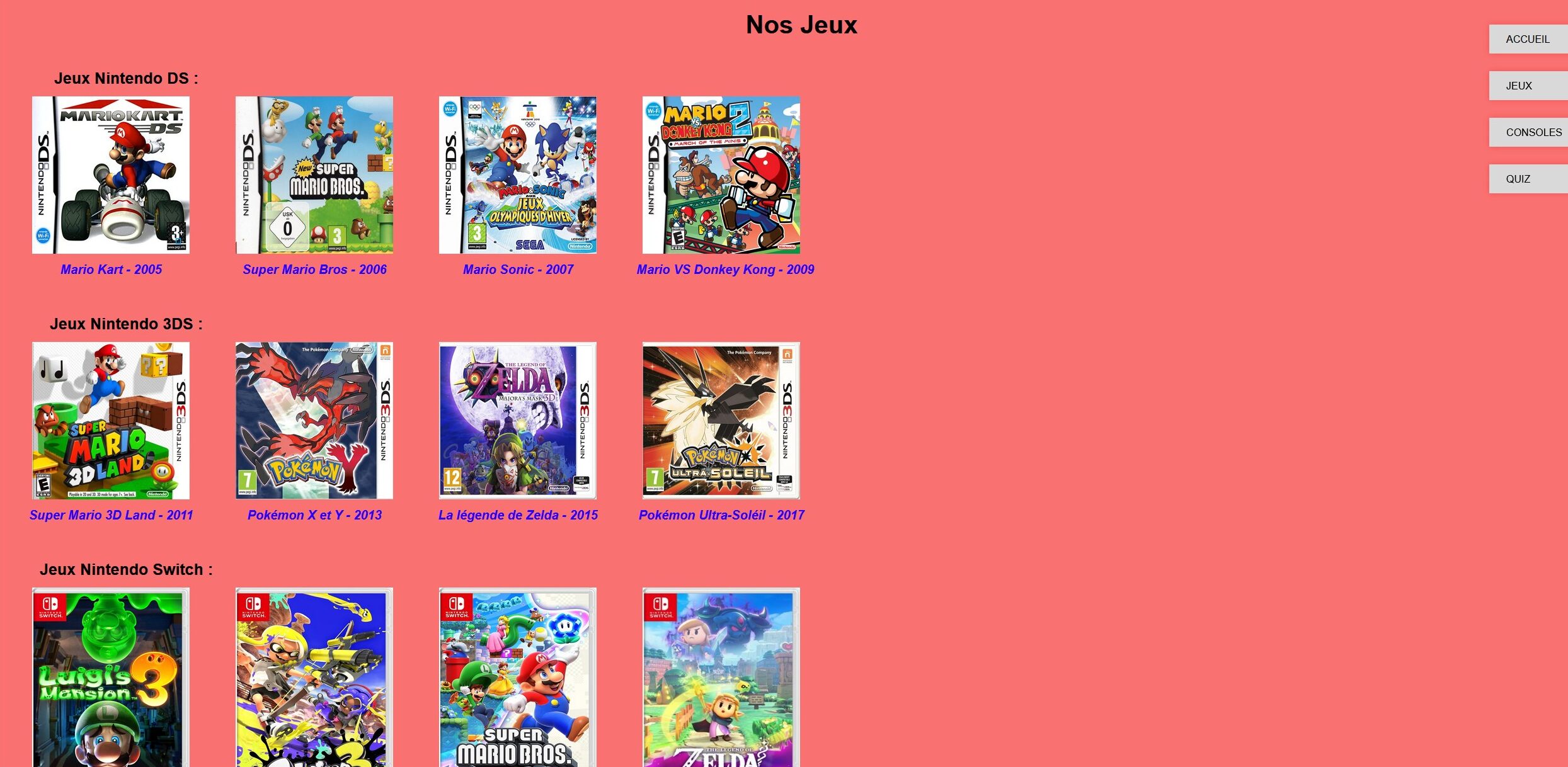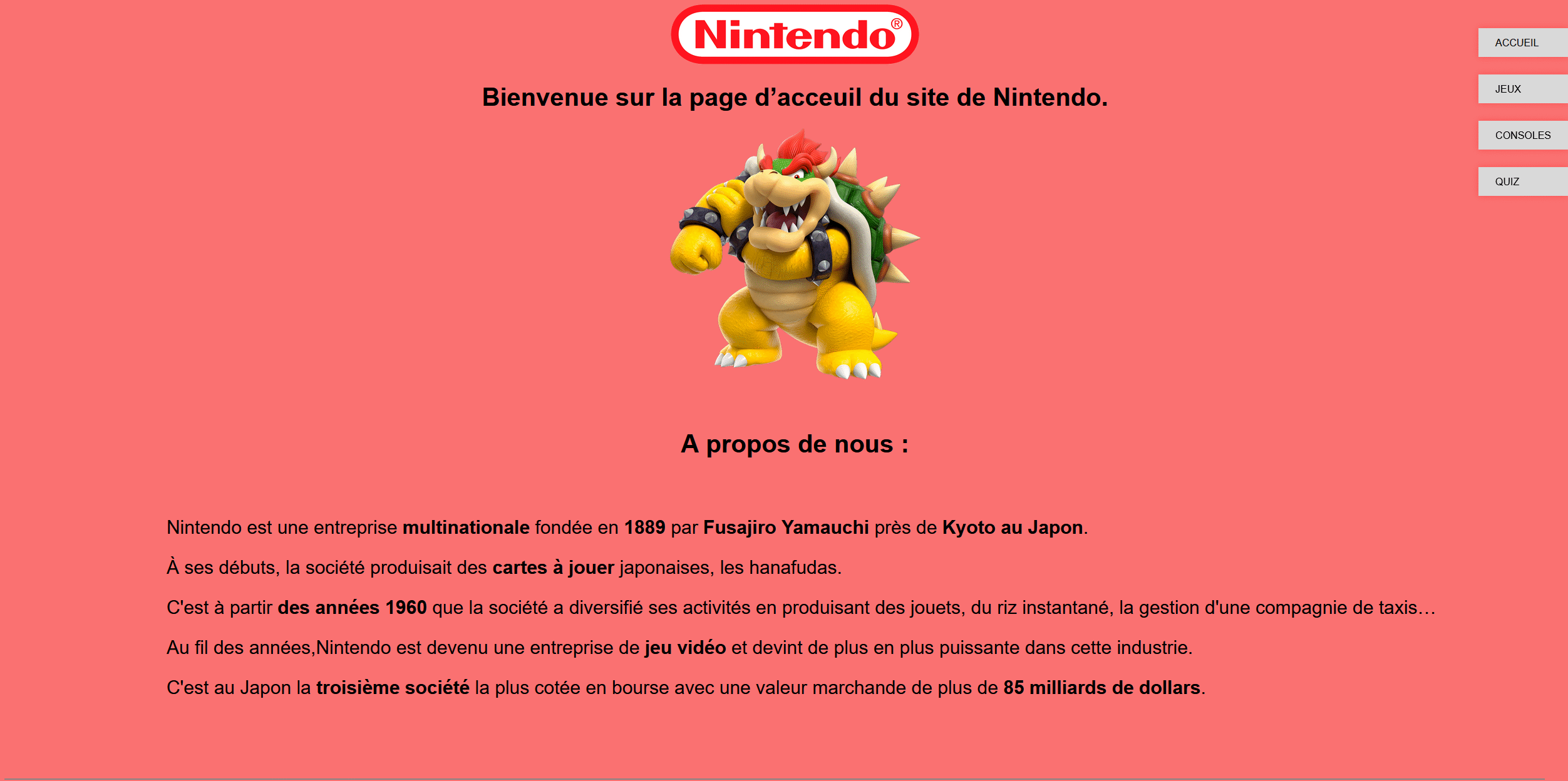 Dans le cadre de l’AP3, j’ai été chargé de concevoir un site web en HTML et CSS pour l’entreprise Nintendo, en respectant un cahier des charges précis défini en amont.